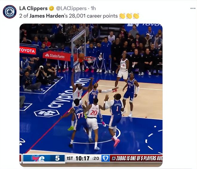 • 哈登28000分里程“悲”!快船遭逆转!马克西39+3+6,乔治首秀9分
