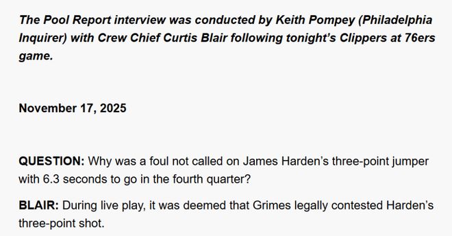 NBA裁判报告:哈登绝杀三分未被犯规,格雷姆斯为合理干扰